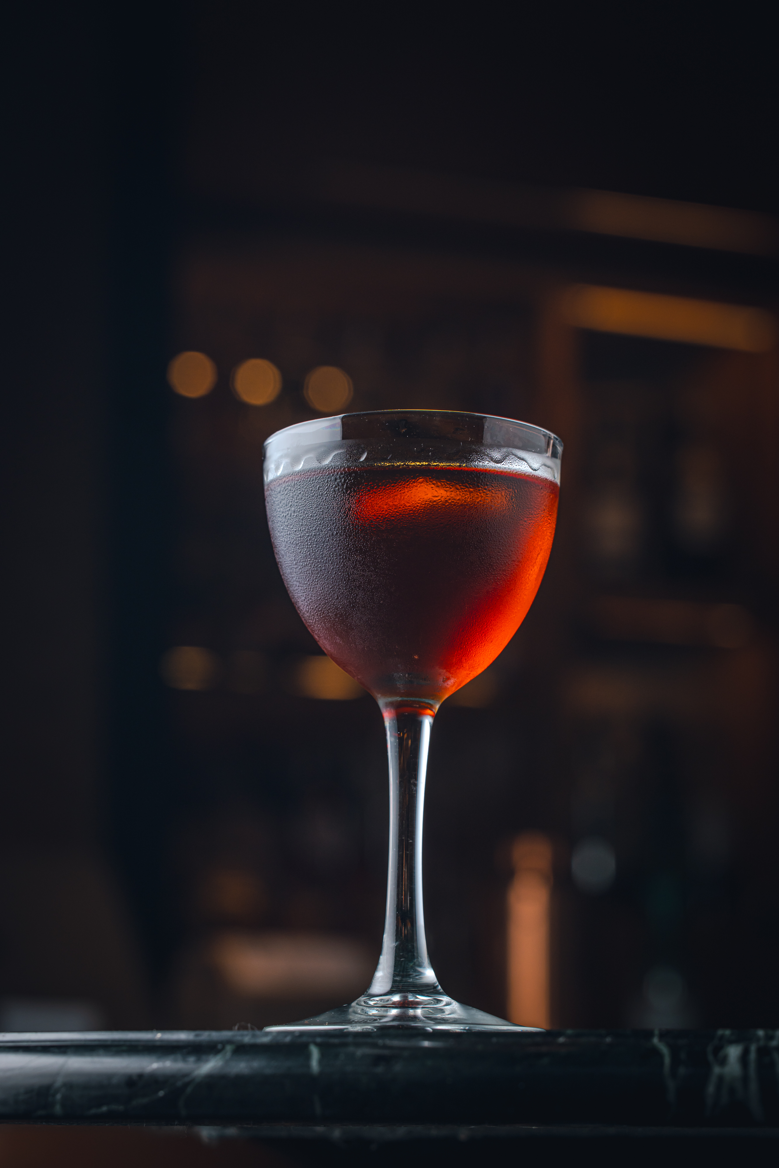 - Adicione todos os ingredientes em um mixing glass com bastante gelo, mexa, e desça numa taça coupé ou copo baixo resfriado, sem gelo (a moda de um Sazerac)